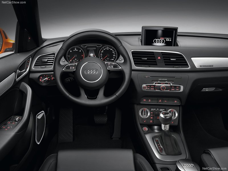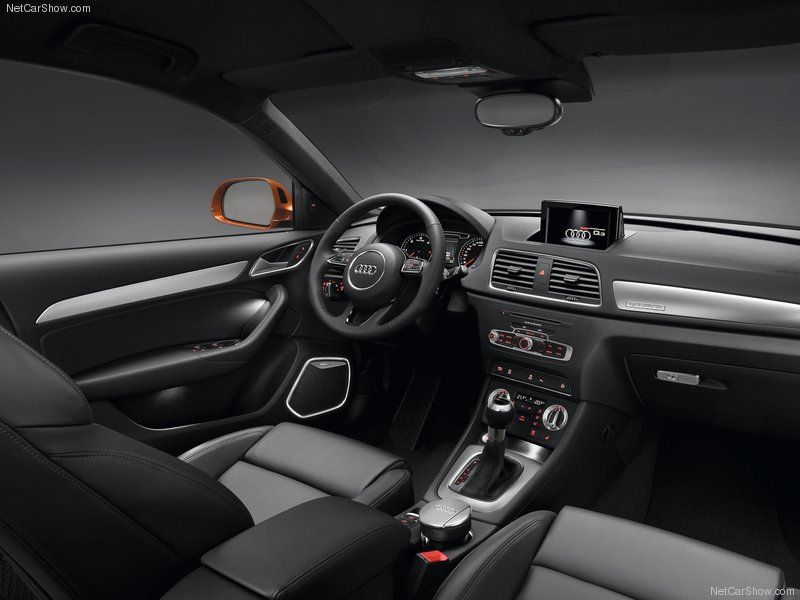 Bên trong, Q3 có không gian nội thất lớn. Khoang chứa hành lý của Q3 có dung tích 460 lít, khi gập hàng ghế sau thì diện tích này lên tới 1365 lít. Các trang thiết bị nội thất tiêu chuẩn của Q3 gồm có: Ghế bọc da điều khiển điện có chức năng sấy hàng ghế trước, hệ thống điều hòa hai vùng, tự động điều chỉnh nhiệt độ bên trong theo lượng bức xạ và độ ẩm bên ngoài. Hệ thống giải trí với 14 loa Bose, định vị Navigation kết nối với màn hình LCD 7 inch, hệ thống đèn nội thất với nhiều đèn LED, cửa sổ trời panorama, ghế ngồi thể thao vô-lăng bọc da ba chấu…