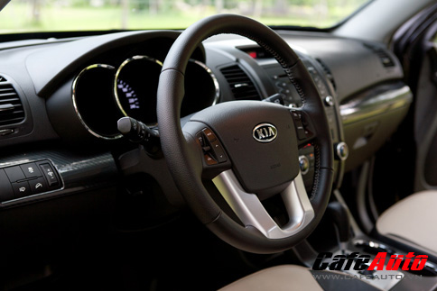New Sorento được cách âm rất tốt. Gần như không nghe thấy tiếng động cơ khi ngồi trong cabin, và chỉ khi chạy ở tốc độ trên 80 km/h mới có tiếng ồn của gió. Đạp thốc chân ga, tiếng ồn rõ nhất chính là tiếng nổ ống xả vọng vào từ phía đuôi, mang lại thêm đôi chút hưng phấn. Kết hợp với tính nhạy bén của động cơ và một tay lái thủy lực khá giàu cảm giác, đây sẽ là chiếc xe đáng giá cho các gia đình cần một chiếc xe đáng tin cậy và đầy đủ tiện nghi.