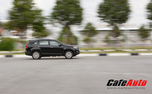 Nhờ sự hỗ trợ của hệ thống ổn định thân xe điện tử (ESP), New Sorento vào cua ổn định và vững vàng, ngay cả ở tốc độ cao khoảng 80 km/h. Thử đảo tay lái chạy zic zac ở tốc độ khoảng 60 km/h, New Sorento vẫn không có dấu hiệu bị vặn thân xe, trượt bánh sau hoặc mất lái.