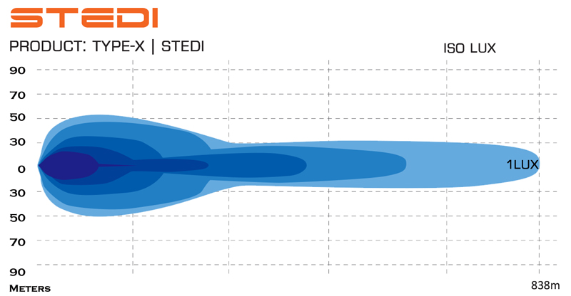 PEAK BEAM DISTANCE @ 1 LUX 838m