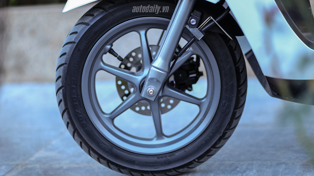 Acruzo sở hữu vành trước kích thước 12 inch, vành sau 10 inch, đi kèm lốp không săm, phanh đĩa đơn trước và phanh trống phía sau. Giảm xóc hành trình phía trước, lò xo đơn ở phía sau hoạt động khá ổn.